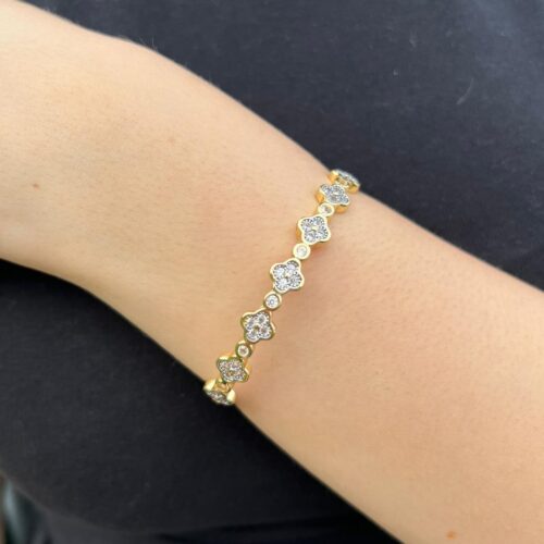 Çiçek Işıltısı 14K Altın Rengi Kaplama Kararmaz Çelik Taşlı Bileklik