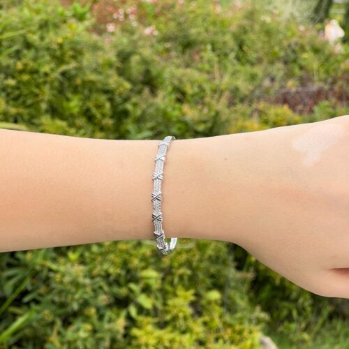 Çapraz Işıltı Kararmaz Çelik Taşlı Bileklik