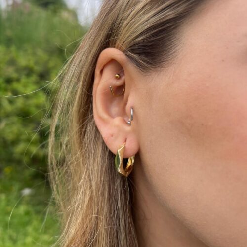 Geometrik Zarafet Altın Rengi Kararmaz Çelik Halka Küpe