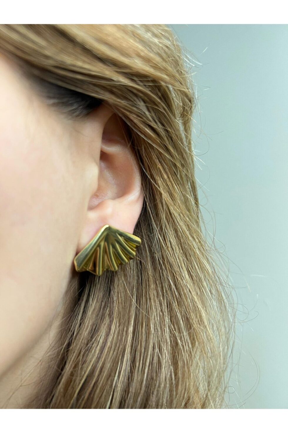 Golden Shell Earrings, doğadan ilham alan kabuk formu ve altın tonların ışıltısıyla stilinize zarafet katıyor.; Modern çizgilerle yorumlanan bu tasarım, ister günlük kombinlerde ister özel davetlerde sofistike bir hava yaratıyor.; Hafif yapısı ve parlayan yüzeyiyle her adımda şıklığınızı tamamlayacak.; Deniz esintisini ve altının sıcaklığını stilinize taşımak için mükemmel bir seçim!