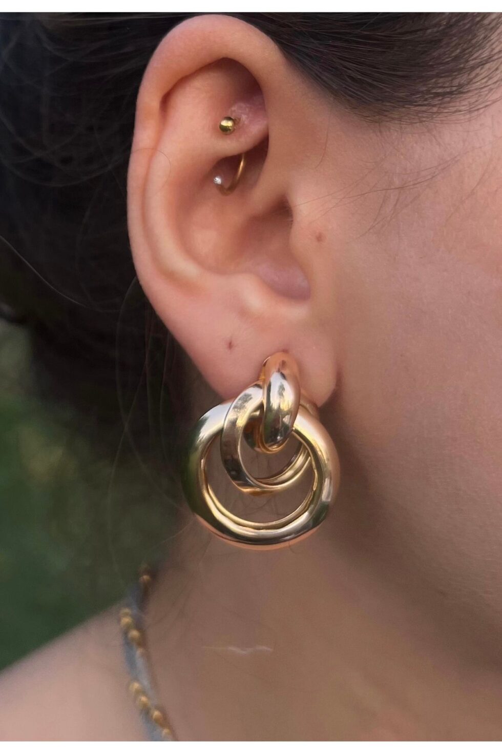 Zamansız şıklığın modern yorumu: Infinity Gold halka küpeler, minimal çizgiler ve zarif bir hacimle stilinize güçlü bir dokunuş katar.; Kararmayan çelik yapısıyla uzun süre ilk günkü parlaklığını korur, suya ve neme karşı dayanıklıdır.; Alerji yapmayan yapısıyla hassas kulaklara uygundur.; ✅ 316L Paslanmaz Çelik – Kararma Yapmaz ✅ Çift Halka Form – Modern & İddialı ✅ Ağır Görünümlü, Hafif Yapı ✅ Alerji Yapmaz – Nikel İçermez ✅ Günlük ve Özel Gün Kombinlerine Uyumlu İster basic bir tişörtle ister şık bir elbiseyle tamamlayın, bu halka küpeler stilinizi bir adım öne taşıyacak.