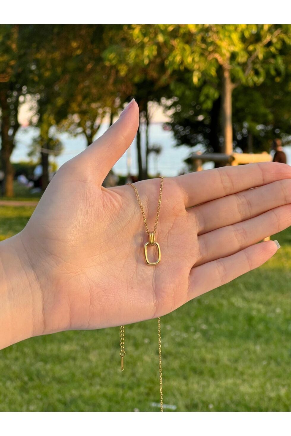 Lunaire Gold Kararmaz Çelik Kolye, sade formuyla güçlü bir stil etkisi yaratır.; Modern tasarımı ve yumuşak oval hatları ile minimal ama dikkat çekici bir duruş sunar.; Altın rengin şıklığıyla günlük kombinlere kolayca uyum sağlarken, kararmaz çelik yapısı sayesinde uzun süreli kullanımda da formunu korur.; Zarif ama iddialı olmak isteyenler için gardırobun vazgeçilmez bir parçası olacak.