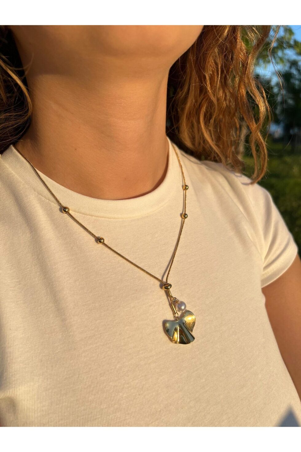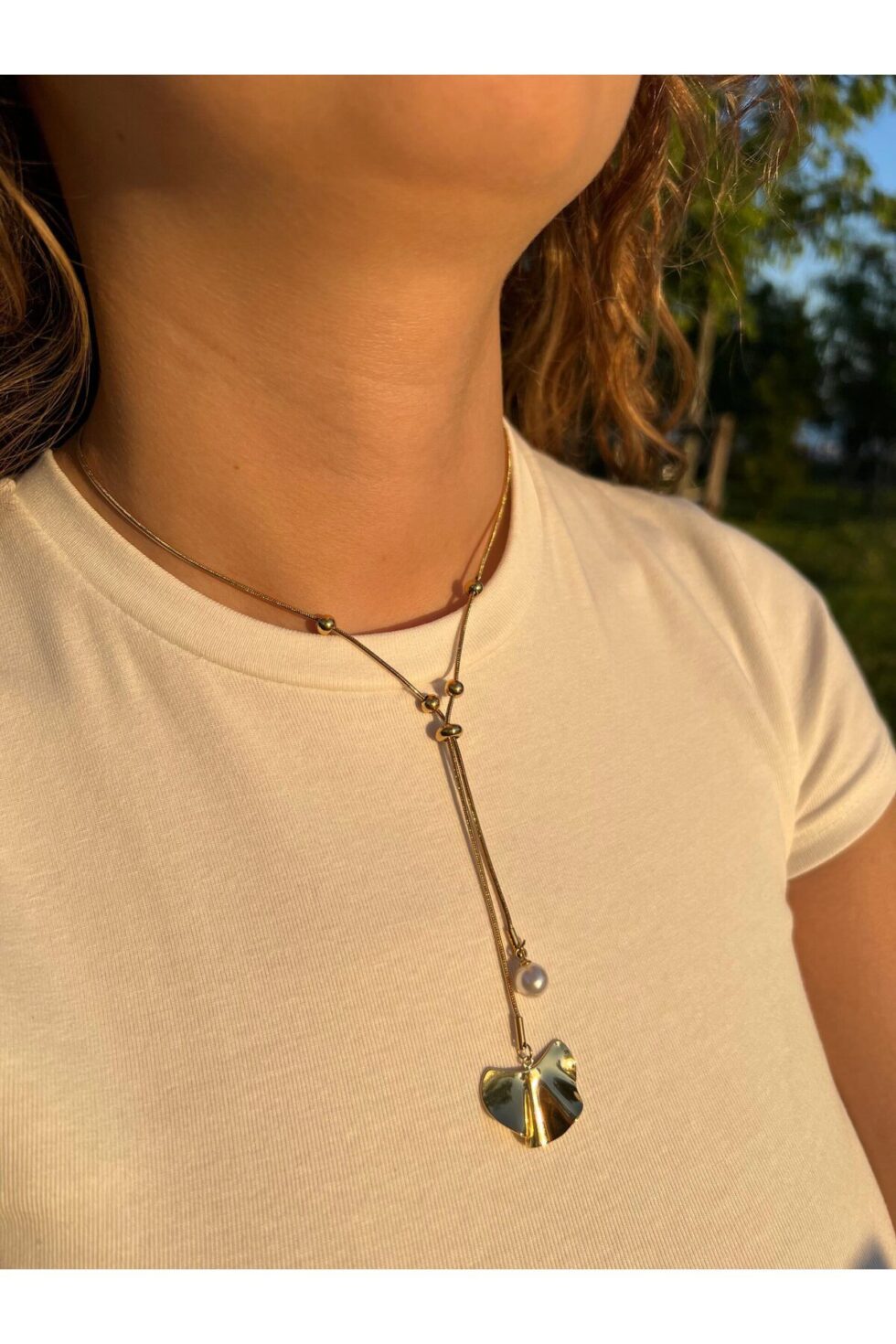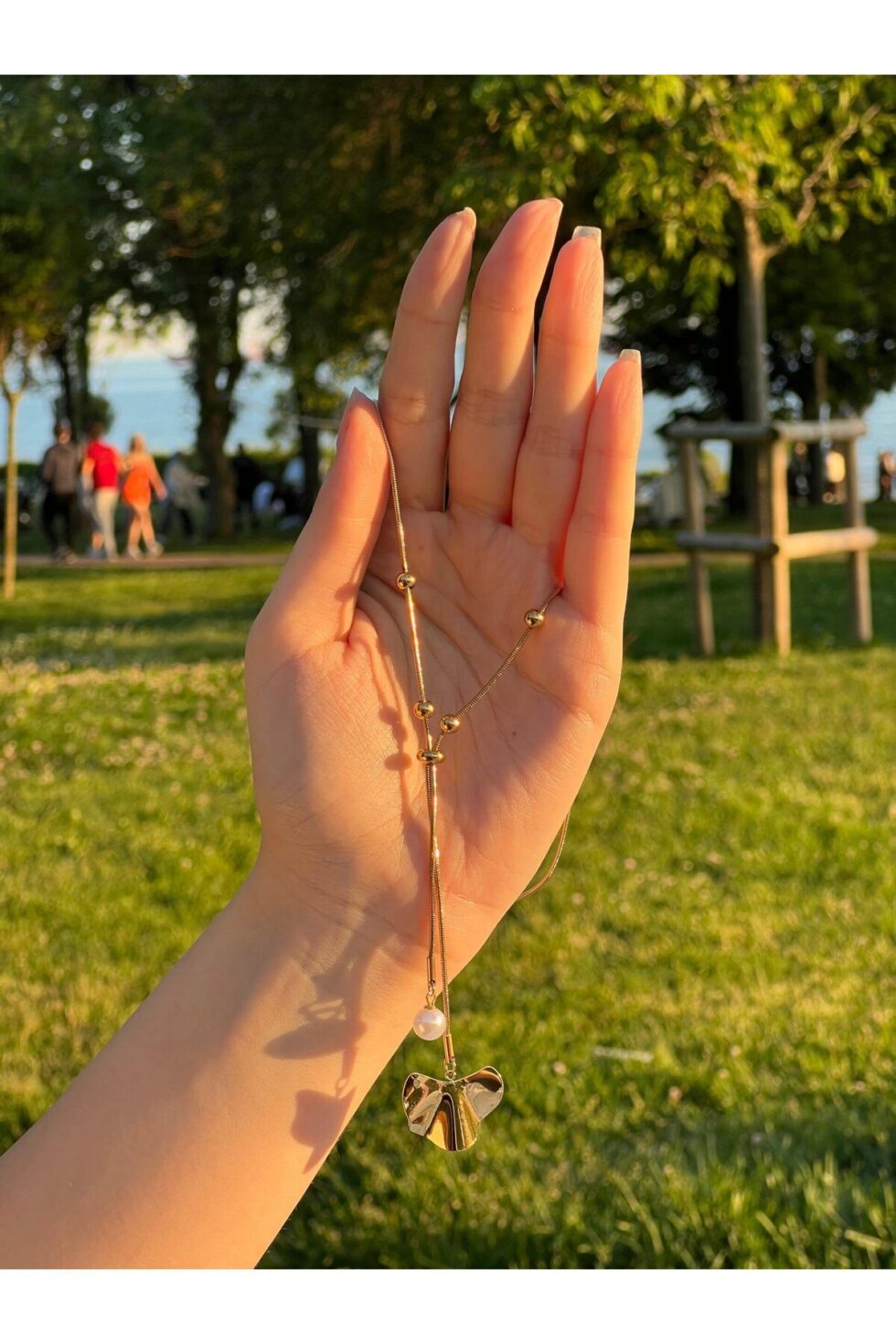 Feminen detayların modern çizgilerle buluştuğu Rivka Gold Kararmaz Çelik Kolye, inci ve fiyonk formuyla zarafeti temsil ediyor.; Ayarlanabilir zinciri sayesinde farklı boyutlarda kullanılabilir ve kombinlerinize göre şekil alır.; Altın tonun sıcaklığı ile dikkat çeken bu parça, kararmaz çelik yapısıyla uzun ömürlü ve konforlu bir kullanım sunar.; Gündelik şıklığın yanı sıra özel günlerinize de zarif bir dokunuş katmak için ideal.