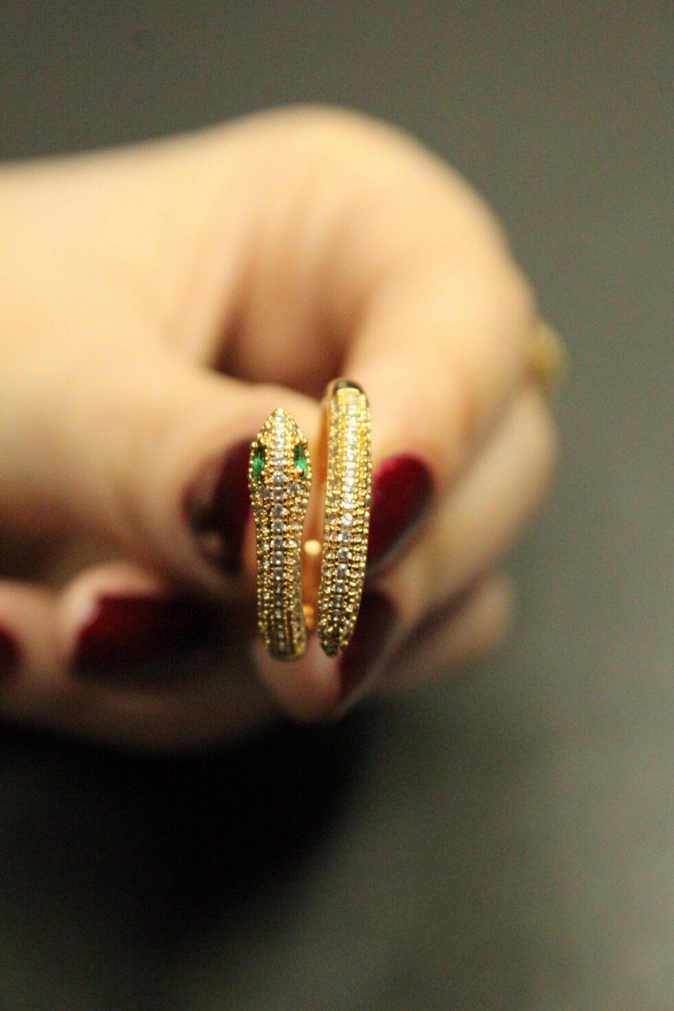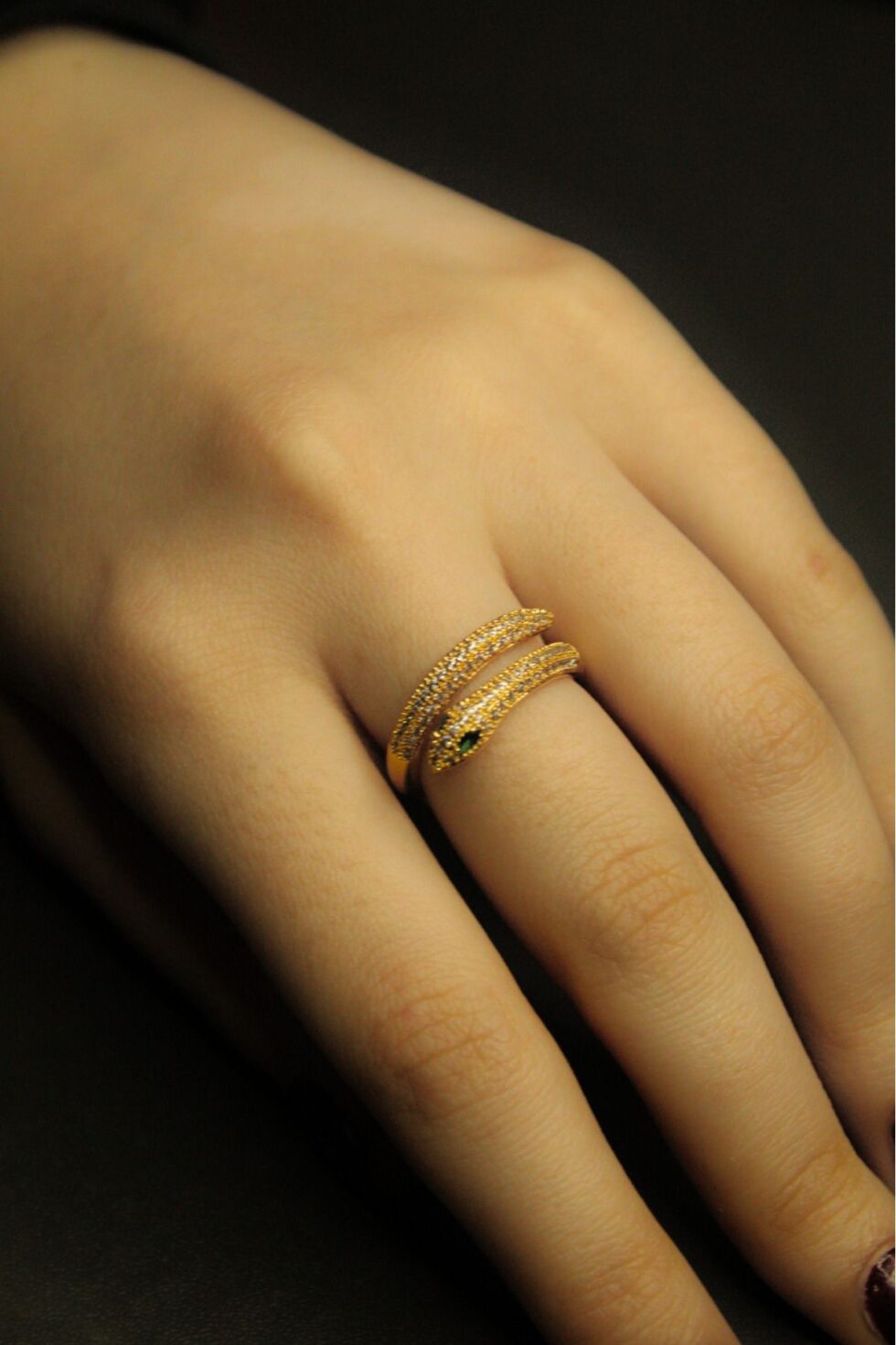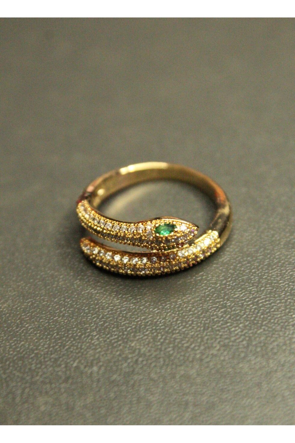 Yılan formu, gizemli havası ve ince taş detaylarıyla Silent Strike Yüzük; hem zarif hem de iddialı bir parça.; Sakin ama etkileyici bir stil yaratmak isteyen kadınlara özel olarak tasarlandı.; Zümrüt tonlarında taş detayıyla yüzüğün baş kısmı dikkat çekerken, ayarlanabilir yapısı konfor sağlar.; Hem gece şıklığında hem ofis stilinde kullanabileceğiniz çok yönlü bir yüzük.
