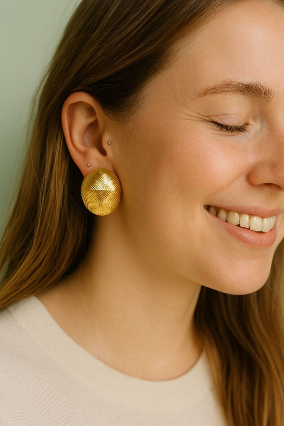 Solea Doku Küpe, klasik stilin güçlü bir yorumu.; Büyük ve yuvarlak formu, yüzeyindeki ince dokulu çizgilerle birlikte ışıltıyı yumuşak bir şekilde yansıtarak zarif ama iddialı bir görünüm sunuyor.; Retro etkileri modern bir yorumla harmanlayan bu parça; beyaz tişörtlerle sade bir şıklık yakalayabileceğiniz gibi, gece elbiseleriyle de çarpıcı bir kontrast oluşturur.; Glowy Co nun sade ama etkili duruşunu sevenler için tasarlandı.