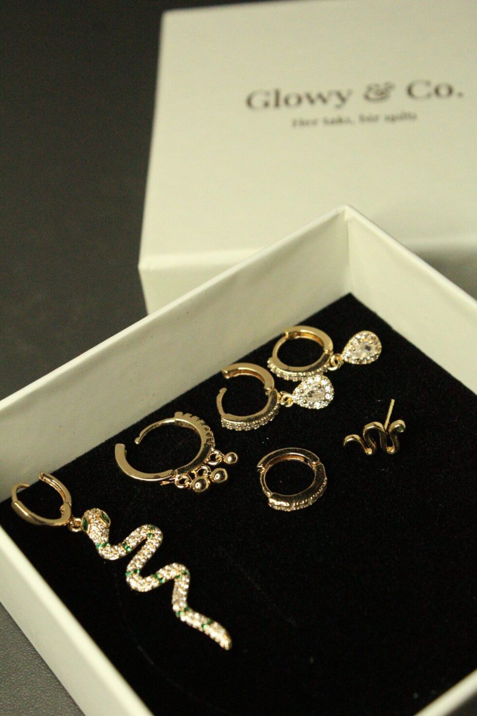 Stellar Mix 6 lı Küpe Seti; farklı tarzlara, ruh hallerine ve enerjilere hitap eden çok yönlü bir koleksiyon.; Işıltılı yılan figürü cesareti ve dönüşümü simgelerken; damla taşlı küpeler zarafeti temsil ediyor.; Mini taşlı halkalar sade şıklığı yansıtırken, burç sembollü model kişisel bir anlam taşıyor.; Bohem, şık ya da minimal.; Her kombine eşlik edecek bu set; kulak kombinlerinde özgürce stil yaratmayı sevenler için vazgeçilmez bir seçenek.; Glowy Co nun karakterli ve güçlü takı anlayışını bir araya getiren bu set, tek bir kutuda çok fazla sen barındırıyor.
