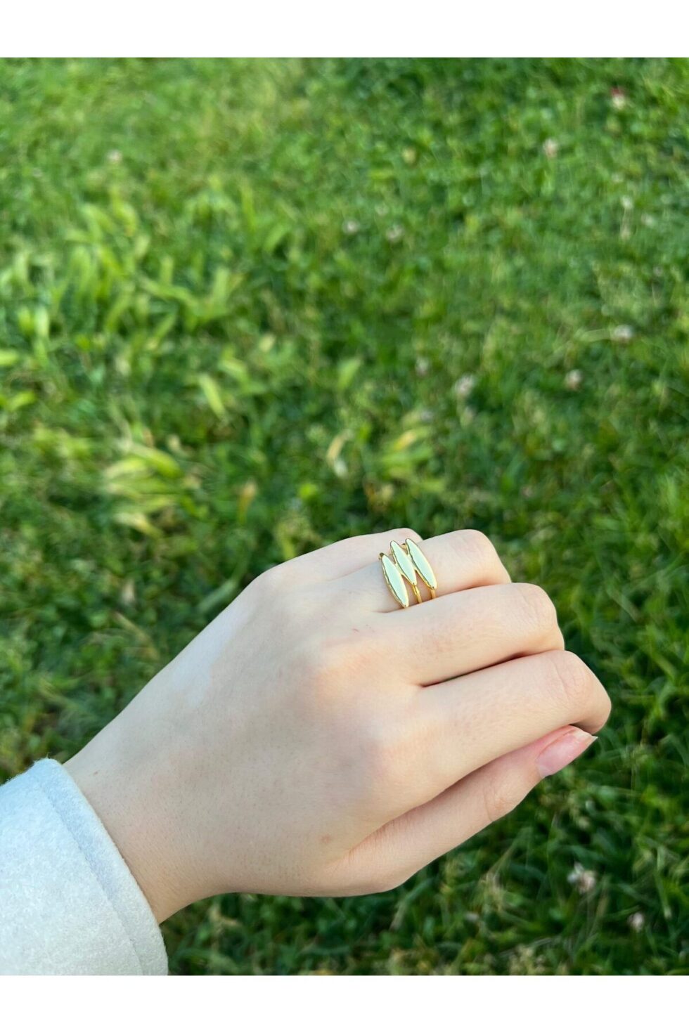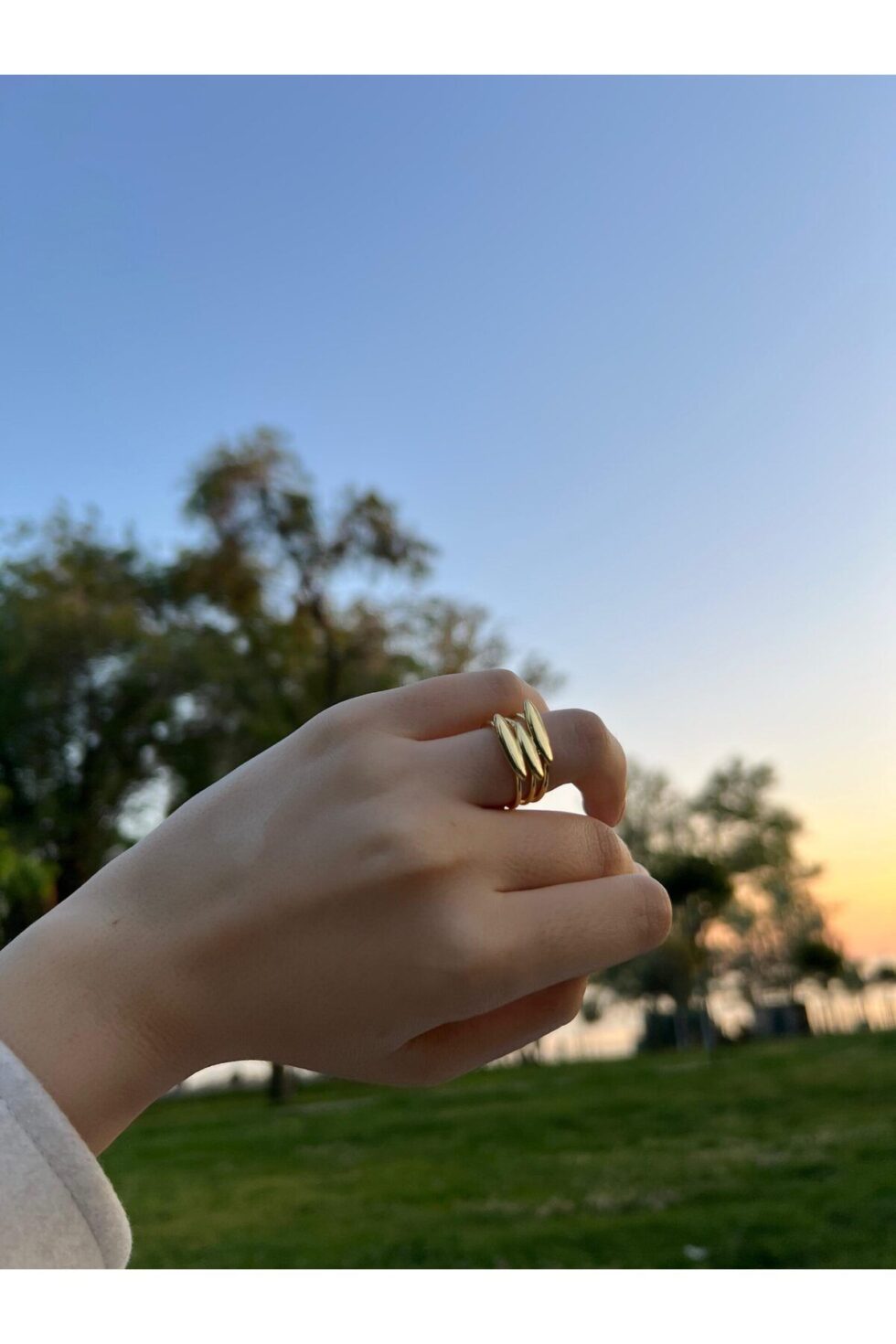 Wave Gold Kararmaz Çelik Yüzük, dalga formlu üçlü yapısıyla modern ve dikkat çekici bir görünüm sunar.; Parlak altın yüzeyiyle birleşen akışkan hatlar, sade kombinlerinize güçlü bir karakter kazandırır.; Kararmaz çelik yapısıyla uzun ömürlü kullanım sunar ve alerji yapmaz.; Hem günlük kullanımda hem de özel günlerde cesur ve farklı bir aksesuar arayanlar için ideal bir seçimdir.